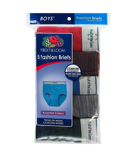 Fruit of the Loom 5Pack Boys Stripe & Solid Cotton Boxer Briefs Underwear L