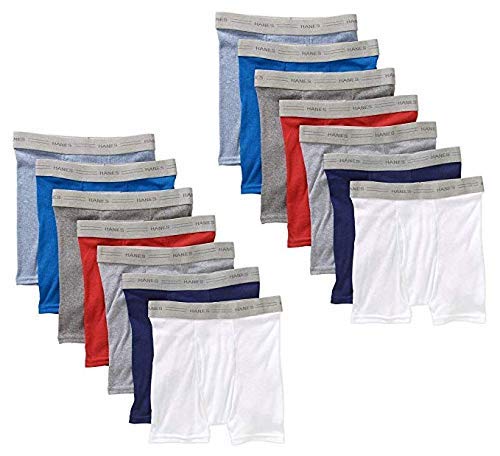 Hanes Boys 14-Pack Exposed Waistband Assorted Color Tagless Boxer Briefs B74P14 (XL)