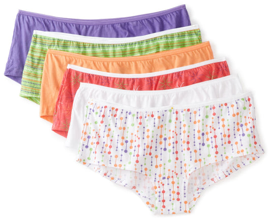 Fruit of the Loom Women's 6 Pack Assorted Cotton Boyshort Panties, Assorted, 9