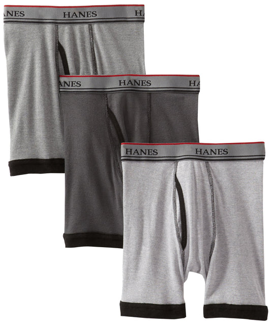 Hanes Big Boys' Platinum Ringer Boxer Brief (Pack of 3), Assorted, Medium