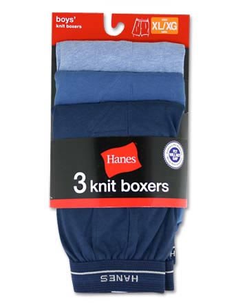 Hanes boys Exposed Elastic Knit Boxer(B539P5)-Assorted Solids-XL