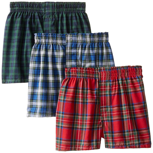 Hanes Big Boys' Woven Boxer, Assorted, Tartan Plaid, Small(Pack of 3)
