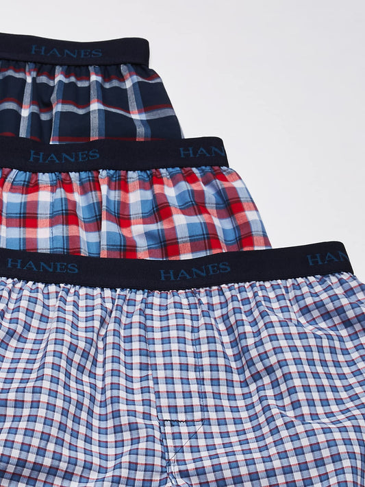 Hanes Boys Exposed Waistband 3-Pack Woven Tartan Boxer, X-Large-Assorted Plaids