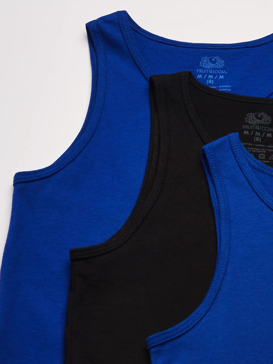 Fruit of the Loom Boys' Solid Multi-Color Soft Tank Tops, 3 Pack, White/Cobalt/Black, 2X-Large