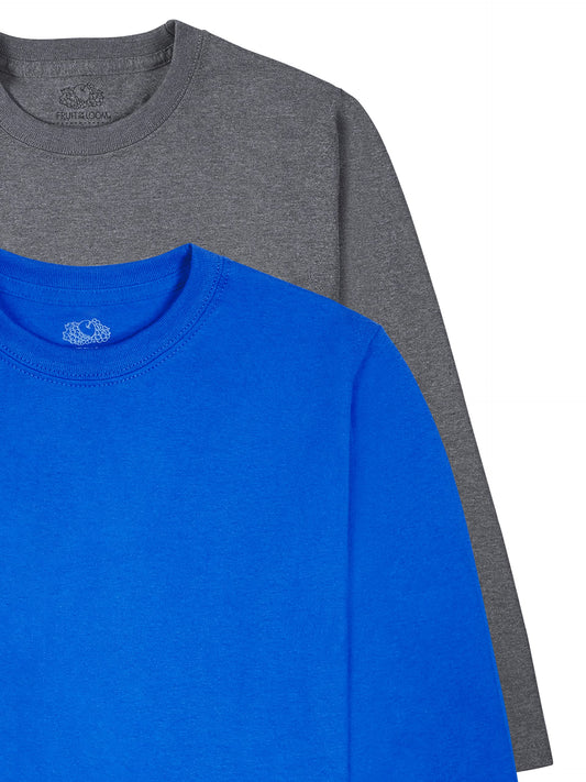 Fruit of the Loom boys- Solid Multi-color Soft Long Sleeve T-shirts, 2 Pack T Shirt, Charcoal Heather Royal, XX-Large US