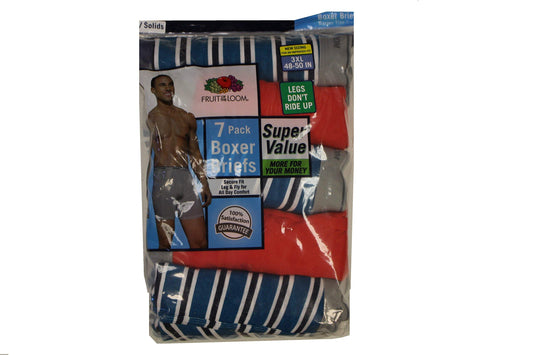 Fruit of the Loom Men's 7Pack Stripes Solids Boxer Briefs Cotton Underwear 3XL