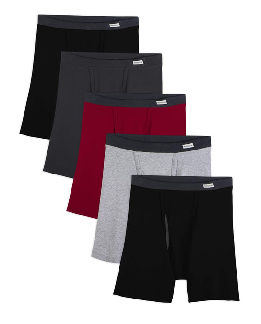 Fruit of the Loom Men's 5-Pack No Ride Up Waistband Boxer Brief, Assorted, X-Large