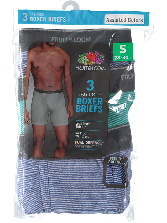 Fruit of the Loom Men's No Ride Up Boxer Brief (Assorted Colors - 3 Pack, Small)