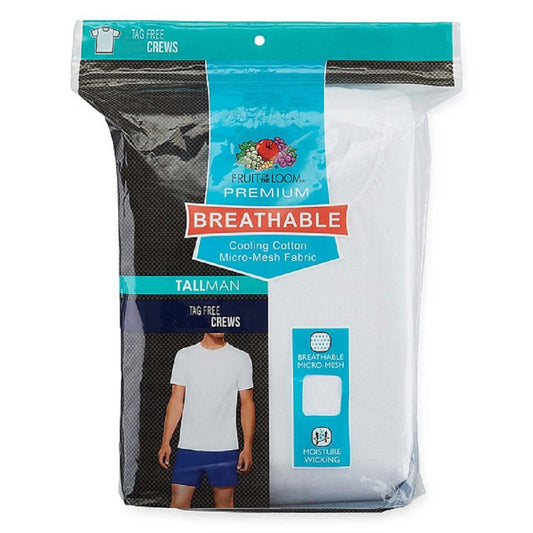 Fruit of the Loom Men's 3-Pack Breathable Crew T-Shirt, White Ice - Tall Sizes, 2X-Large