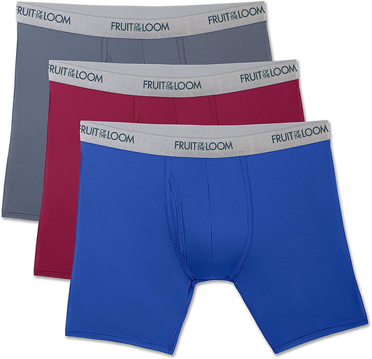 Fruit of the Loom Men's 12-Pack Everlight Boxer Briefs Breathable Blend (Large (36-38) Assorted
