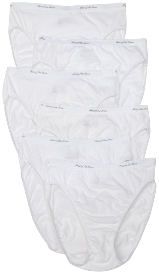 Fruit of the Loom Women's Hi-Cut Panties 6-Pack Brief Panties, White, 5