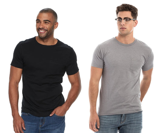 byHanes Hanes Men's 2 Pack Short-Sleeve Pocket Beefy-T (Black & Grey, XX-Large)
