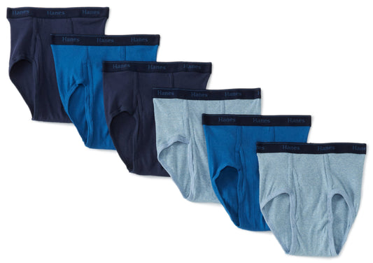 Hanes Men's Tagless Cotton Brief (Pack of 6), Blue Assorted, Medium