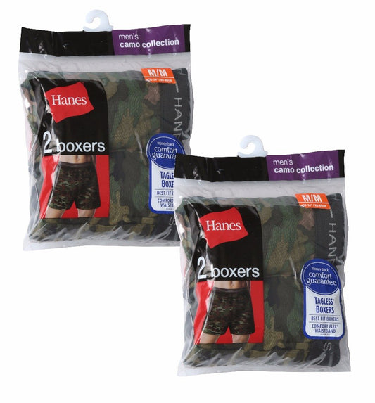 Hanes Red Label Men's 4-Pack Exposed Waistband Woven Camo Boxers, Camo, XL