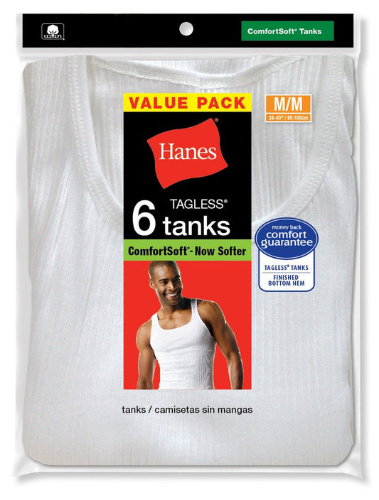 Hanes Men's 6-Pack White Tagless A-Shirts Tanks Tank Top Undershirts, White Pack of 6 Shirts), Medium