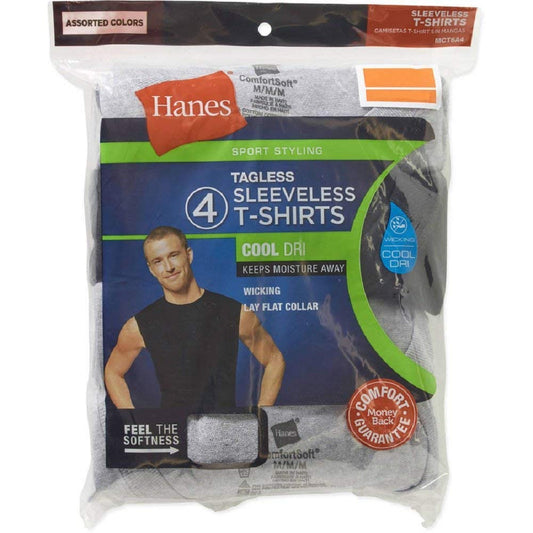 Hanes Men's Sport Styling Cotton Sleeveless T-Shirts w/Cool DRI 4-Pack (XX-Large (50-42"), Black)