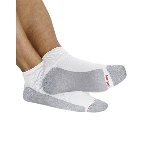 Hanes mens Double Tough Ankle 6-pair Pack, Available in Big & Tall Yoga Socks, White/Grey Foot Bottom, 6 12 US
