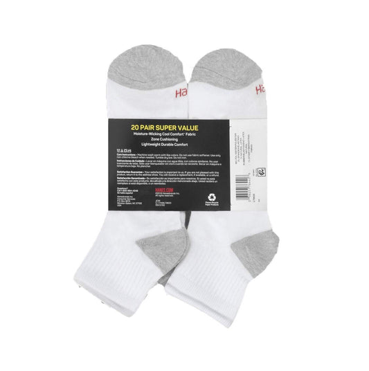 Hanes Men's Ankle Super Value Socks 20pk - (White/Gray, 6-12)