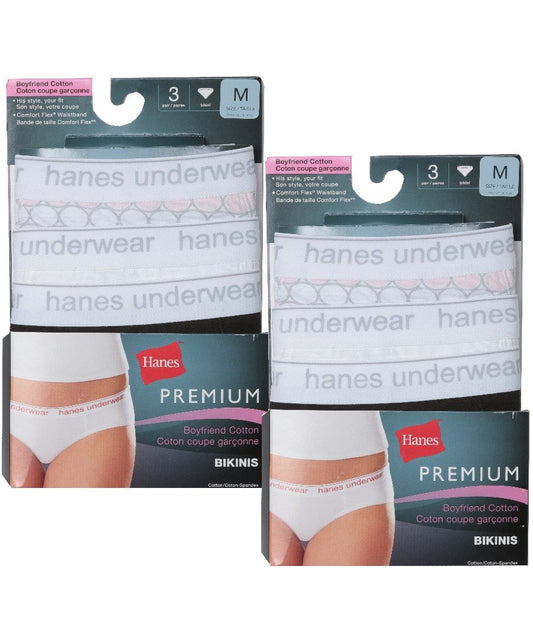 Hanes Premium Boyfriend Cotton Bikinis Exposed Waistband(6Pack), Assorted, S