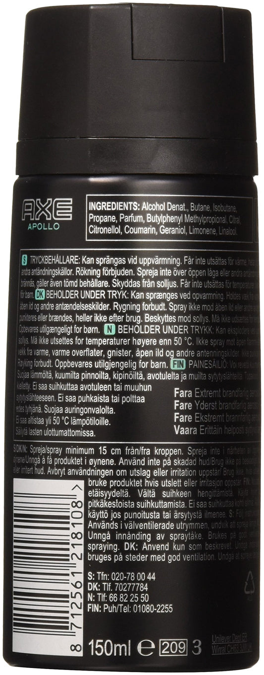 AXE Body Spray Deodorant Apollo 150 Ml / 5.07 FL Oz (Pack of 6)