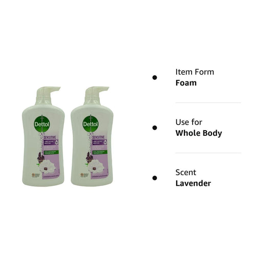 Dettol Anti Bacterial pH-Balanced Body Wash, Sensitive, 21.1 Oz / 625 Ml (Pack of 2) for Moisturizing