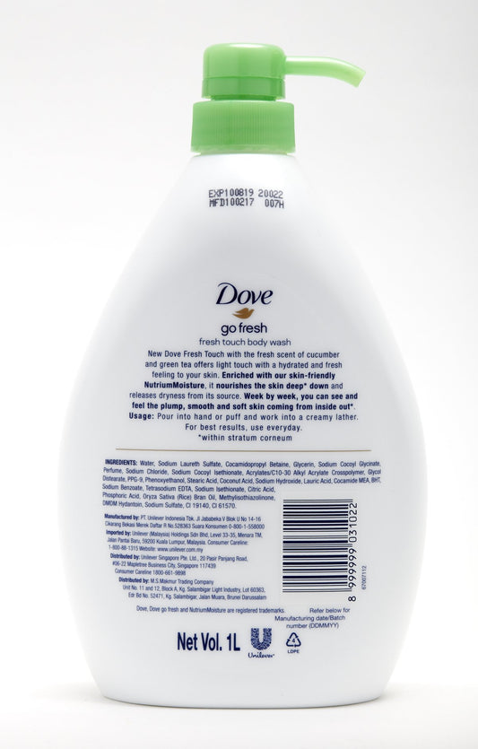 Dove Go Fresh Nourishing Body Wash, Cucumber and Green - 33.8 Fl Oz / 1L x 2 Pack