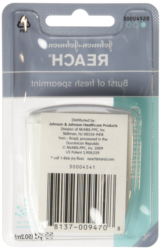 REACH Cleanburst Waxed Dental Floss, Spearmint 55 Yards (Pack of 12)