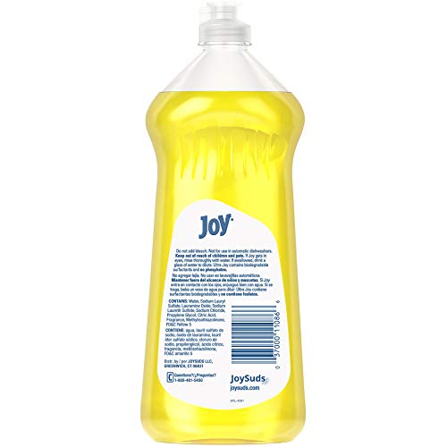 Joy Ultra Dishwashing Liquid, Lemon Scent, Yellow, 30 Ounce (Pack of 5)