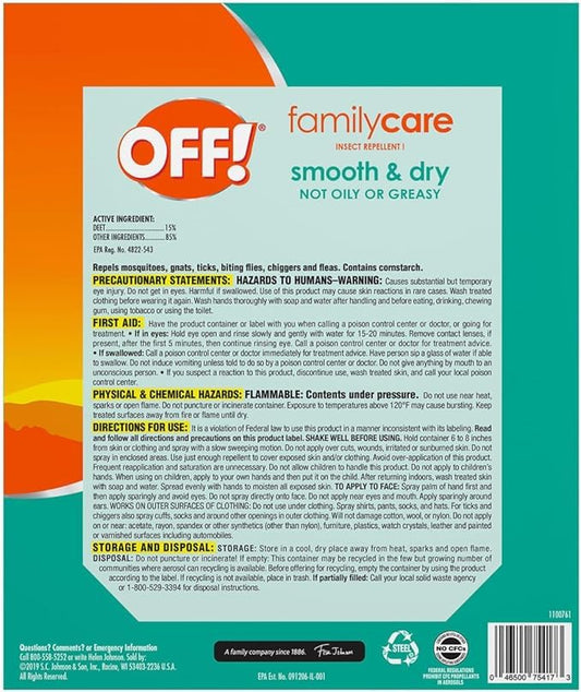 OFF! Family Care Insect Repellent, Smooth & Dry Travel Aerosol Sprays, 6 oz. + 2.5 oz.