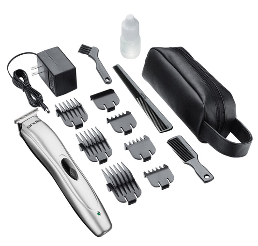 Andis Men 22725 VersaTrim Corded/Cordless Hair & Beard Trimmer Kit - Carbon Steel T-Blade for Close Cutting with Rechargeable Powerful Lithium-Ion Battery - Set of 14-Pieces, Silver