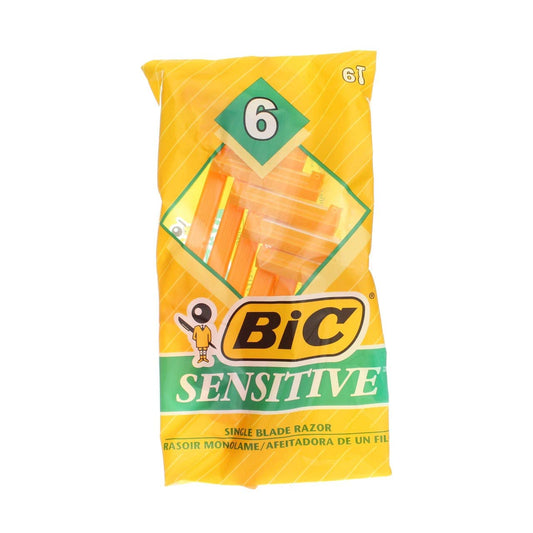 BIC Single Blade Sensitive Disposable Shaver,6 ea, Yellow