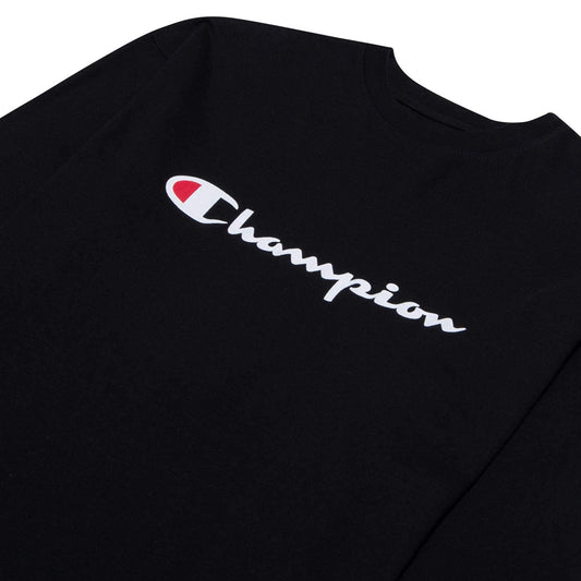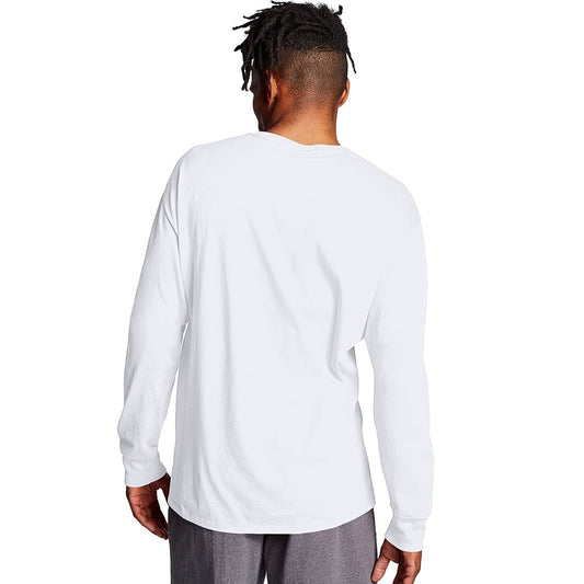 Champion Men's Long-Sleeve, Heritage Tee, Heavyweight Crewneck T-Shirt, White Double Logo, X-Large