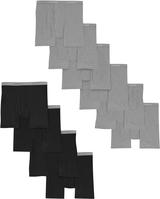 Hanes Men's Boxer Briefs, Soft and Breathable Cotton Underwear with ComfortFlex Waistband, Black And Gray 10 Pack