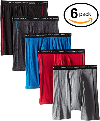 Hanes Mens Tagless Boxer Brief 6-Pack (Sport, Large)