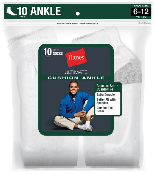 Hanes mens 10-pack Ankle fashion liner socks, White, 6 12 US