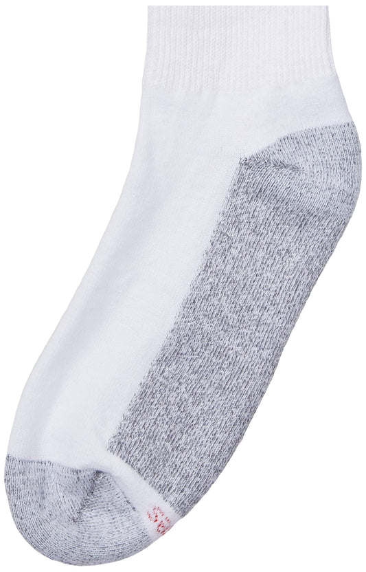 Hanes Mens Double Tough Socks, 12-pair Pack Crew Socks, White/Grey Foot Bottom, 6-12