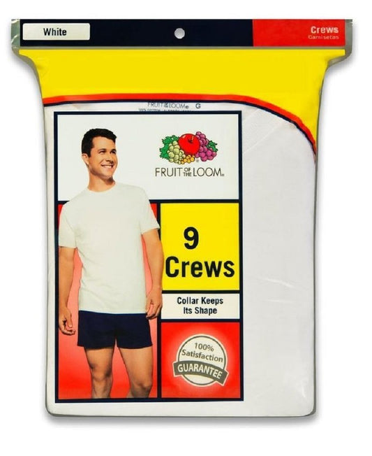 Fruit of the Loom Mens 9Pack White Crew-Neck Undershirts Cotton T-Shirts, M