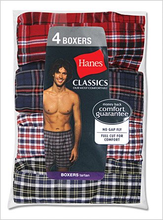 Hanes Mens Tartan Boxer 4 Pack (Large)