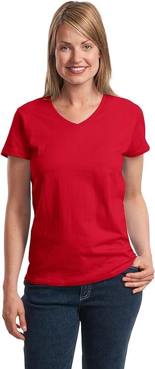 Fruit Of The Loom Women's Essentials Elbow Length V-Neck T-Shirt