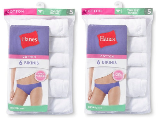 Hanes Women's 12Pack 100% Cotton BIKINI Underwear Ladies Panties, White 9
