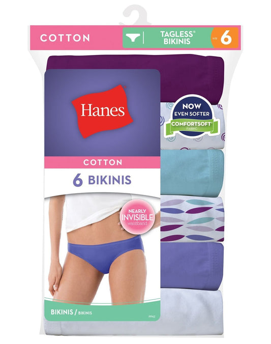 Hanes Women's 6Pack 100% Cotton Bikini Underwear Ladies Panties, Assorted 9