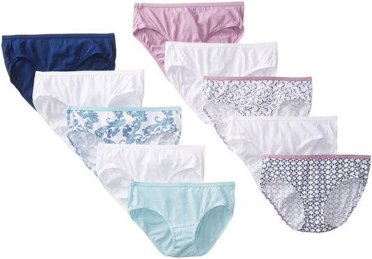 Hanes Women's 6Pack 100% Cotton Bikini Underwear Ladies Panties, Assorted 10