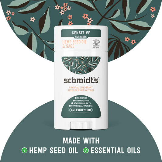 Schmidt's Aluminum Free Natural Deodorant for Women and Men, Hemp Seed Oil and Sage for Sensitive Skin with 24 Hour Odor Protection, Certified Cruelty Free, Vegan Deodorant, 3.25 oz,vetiver,sage,WHITE