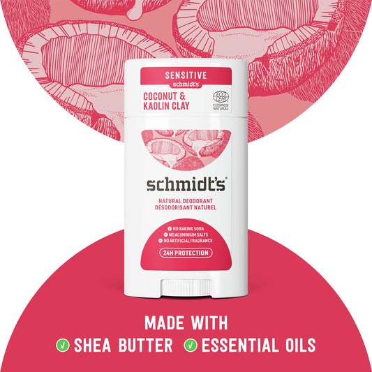 Schmidt's Aluminum Free Natural Deodorant Coconut & Kaolin Clay 2-pk for Women and Men, with 24 Hour Odor Protection, Certified Natural, Cruelty Free, Vegan Deodorant 2.65oz