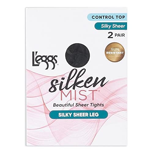 L'eggs Silken Mist Women's Control Top Silky Sheer Tights, Jet Black, Queen Plus, 2 Pair