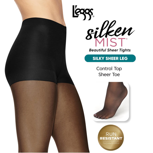 L'eggs Silken Mist Silky Sheer Women's Tights with Run Resist, Control Top, Sheer Toe, Sun Beige, Size Q (Pack of 1)
