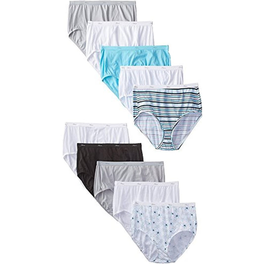 Hanes Women's Cotton Brief Panties (Pack of 10) Assorted (11, Assorted)