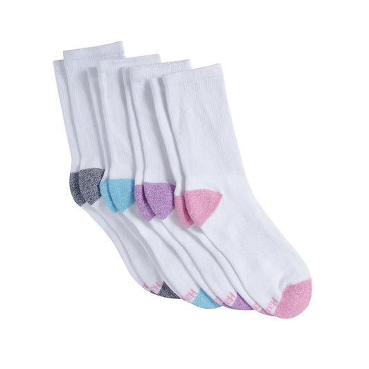 Hanes Women's 4-Pack Sport Cool Comfort Crew, White/Pink Assortment/Multi, 5-9