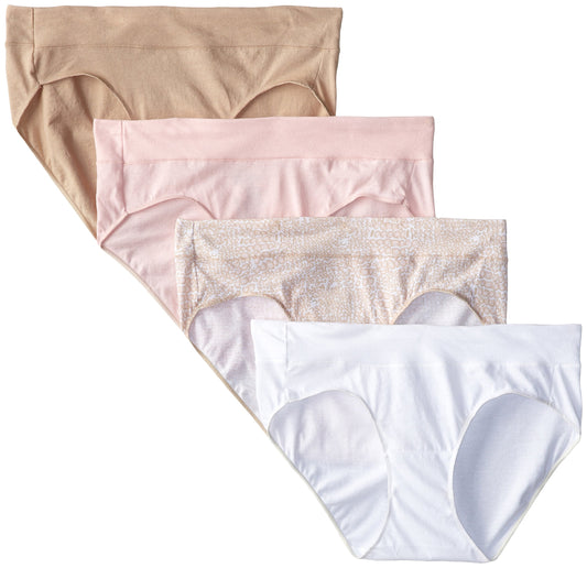 Hanes Women's 4Pack 100% Cotton Bikini Underwear Ladies Panties, Assorted 10