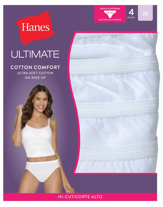 Hanes Ultimate Women's 4-Pack Hi-Cut Panties, White, 6